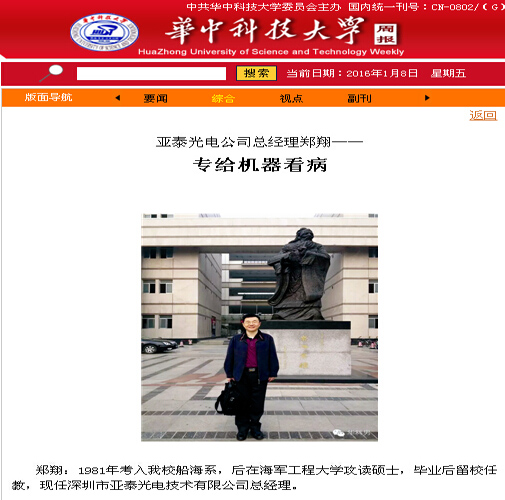 華中科技大:專給機器看病的醫生--記亞泰光電總經理鄭翔先生!