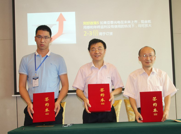 現場簽約的嘉賓與亞泰總經理鄭翔(中間)合影留念