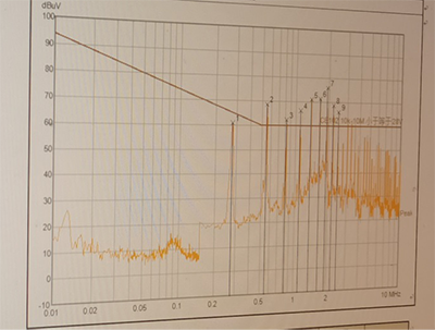 接著是更加嚴(yán)峻的考驗(yàn),在測試CE102 、RE102時(shí)波形出現(xiàn)了超標(biāo)現(xiàn)象。當(dāng)聽到波形超標(biāo)時(shí)腦子里浮現(xiàn)的第一反應(yīng)可能是電源部分的濾波處理出現(xiàn)了問題,由于現(xiàn)場沒有適合的元器件進(jìn)行整改處理,同時(shí)離客戶規(guī)定拿到檢測報(bào)告僅剩下一周不到的時(shí)間。最后不得不頂著壓力通知結(jié)束測試,將設(shè)備帶回進(jìn)行二次整改。若不解決CE102 、RE102的問題想拿到合格的檢測報(bào)告將遙遙無期。分析了超標(biāo)的波形后覺得問題并沒有想象中的那么糟糕,只要設(shè)備里增加某一型號(hào)的濾波器,再加強(qiáng)防護(hù)屏蔽增至雙層防護(hù)處理,或許能將超標(biāo)的波形壓下去。經(jīng)過二次整改后,與廣電計(jì)量院約定了時(shí)間進(jìn)行測試。經(jīng)過了13小時(shí)測試后結(jié)果出來了,測試工程師表示整改后的波形非常穩(wěn)定,并當(dāng)場對(duì)我司研制的產(chǎn)品給予肯定。聽到消息后心里的大石頭終于可以落了下來,為上級(jí)領(lǐng)導(dǎo)交上一份滿意的答卷。