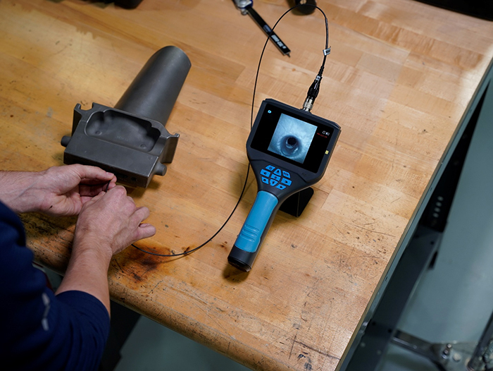圖片:Yateks B+ 便攜式 2.2 毫米 OD 視頻內(nèi)窺鏡正在檢查渦輪葉片組件。